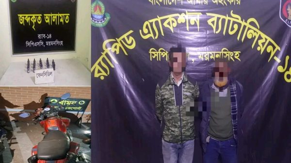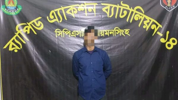 ময়মনসিংহ সিপিএসসি, র্যাব-১৪, এর আভিযানিক দল গোপন সংবাদের ভিত্তিতে ০৪ ফেব্রুয়ারী ২০২৬খ্রিঃ বিকাল অনুমান ১৬৪৫ ঘটিকায় ময়মনসিংহ জেলার মুক্তাগাছা থানাধীন ভাবকির মোড় সংলগ্ন মেসার্স জান্নাত ফার্নিচার এর সামনে ময়মনসিংহ-জামালপুর রোডে
