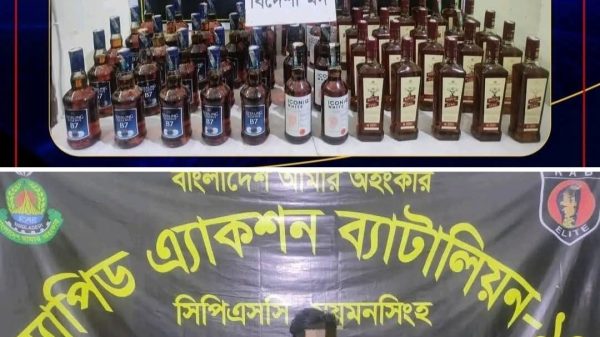 ময়মনসিংহ র্যাব-১৪,এর মাদক বিরোধী অভিযানে ৬০ বোতল বিদেশী মদ সহ ০১ মাদককারবারি গ্রেফতার করা হয়। ময়মনসিংহ সিপিএসসি, র্যাব-১৪, এর আভিযানিক দল গত ২৩ ফেব্রুয়ারী ২০২৬ বিকাল অনুমান সোয়া ৪ টায়