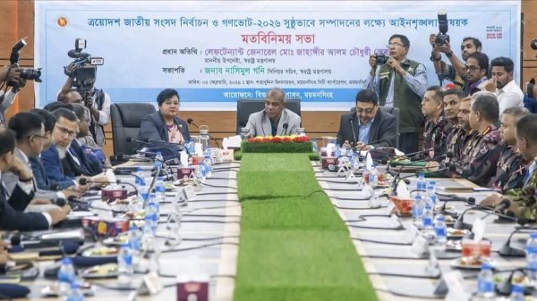ত্রয়োদশ জাতীয় সংসদ নির্বাচন ও গণভোট-২০২৬ উপলক্ষ্যে নিয়োজিত বিজ্ঞ এক্সিকিউটিভ ম্যাজিস্ট্রেটগণের সাথে মতবিনিময় সভা অনুষ্ঠিত হয়। আজ ৮ ফেব্রুয়ারি রবিবার সকাল ৯.৩০ঘটিকায় ময়মনসিংহ জেলা প্রশাসনের আয়োজনে জেলা প্রশাসকের সম্মেলন কক্ষে