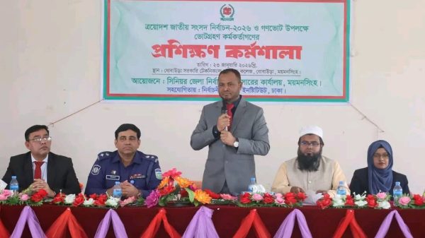 ময়মনসিংহের তারাকান্দা উপজেলার তারাকান্দা সরকারি ডিগ্রি কলেজ প্রাঙ্গণে ত্রয়োদশ জাতীয় সংসদ নির্বাচন ২০২৬ এবং গণভোট উপলক্ষ্যে ভোটগ্রহণ কর্মকর্তাদের প্রশিক্ষণ কর্মশালা আজ ২৫ জানুয়ারি রবিবার অনুষ্ঠিত হয়েছে। উক্ত অনুষ্ঠানে প্রধান অতিথি